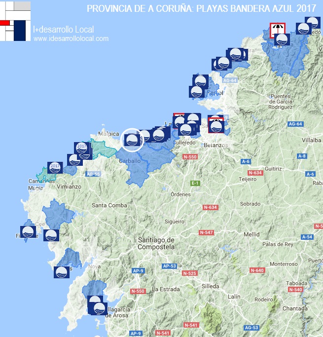 Es una herramienta sencilla creada, por I+desarrollo Local ©, en Google My Maps que ofrece información para cada una de las playas Bandera Azul de la provincia.