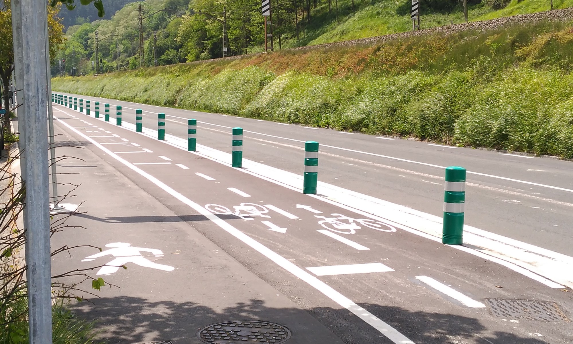 Carril bici, senda peatonal y carretera en Tolosa (Guipuzcoa)
